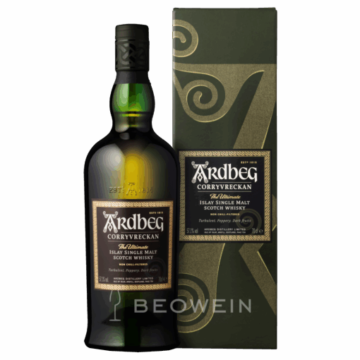 Non chill-filtered und mit 57.1% vol. abgefüllt, weist er einen vollen Körper und Textur auf. Ardbeg Corryvreckan ist der Inbegriff des ungezähmten Charakters Islays. Namenspatron und Inspiration ist der gleichnamige Meeres-Strudel. Corryvreckan ist Europas größter und weltweit zweitgrößter Meeres-Strudel. Er befindet sich nahe den Hybriden-Inseln Islay und Jura an der Westküste Schottlands. Bereits die Kelten haben die ungebändigte Macht dieses Wassers verehrt.