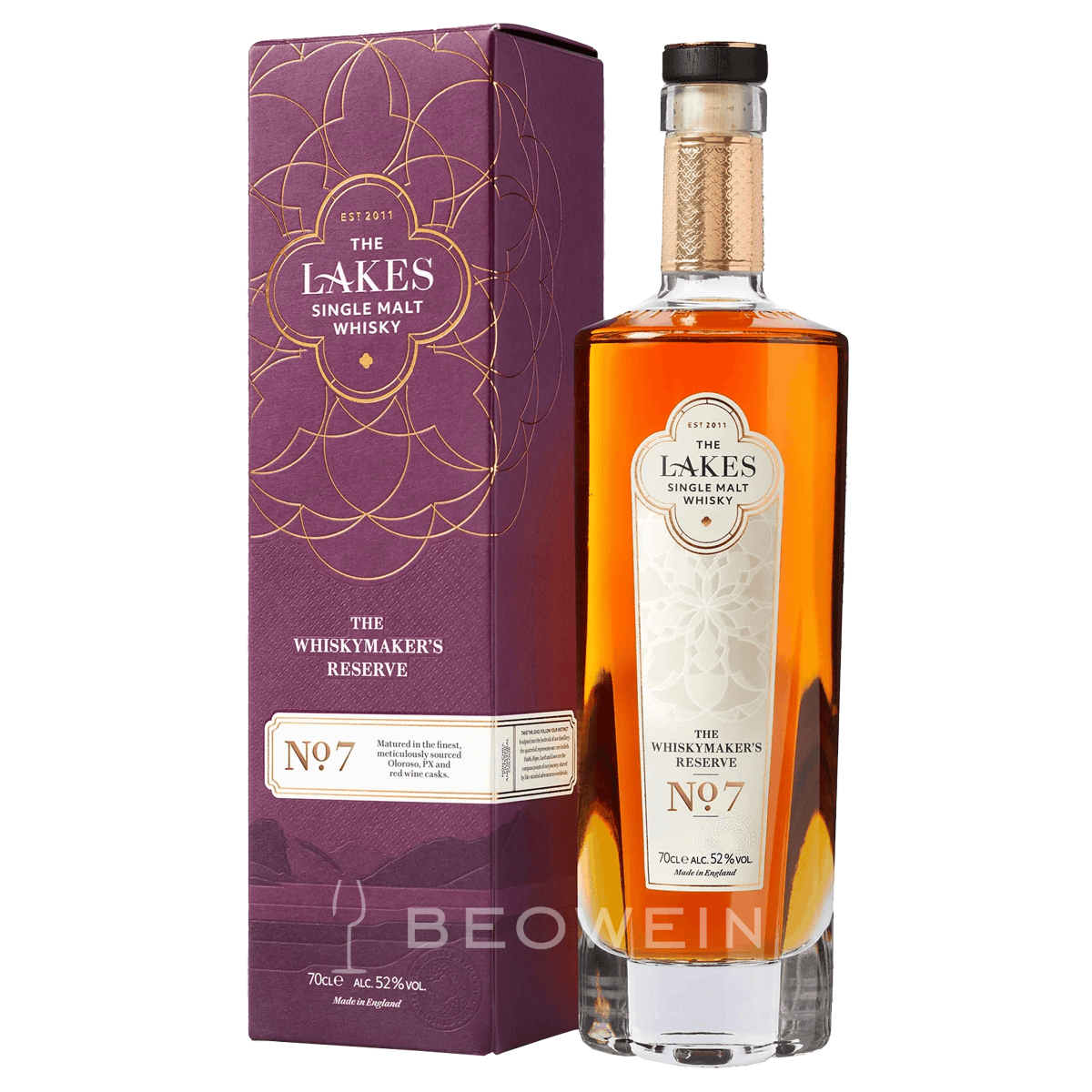 The Lakes The Whiskymaker’s Reserve No 7 gehört zur Experimental-Serie der neu erbauten Destillerie auf dem Weg zur Definition ihres eigenen Stils. Diese Abfüllung reifte in den besten Oloroso-, PX- und Rotweinfässern.